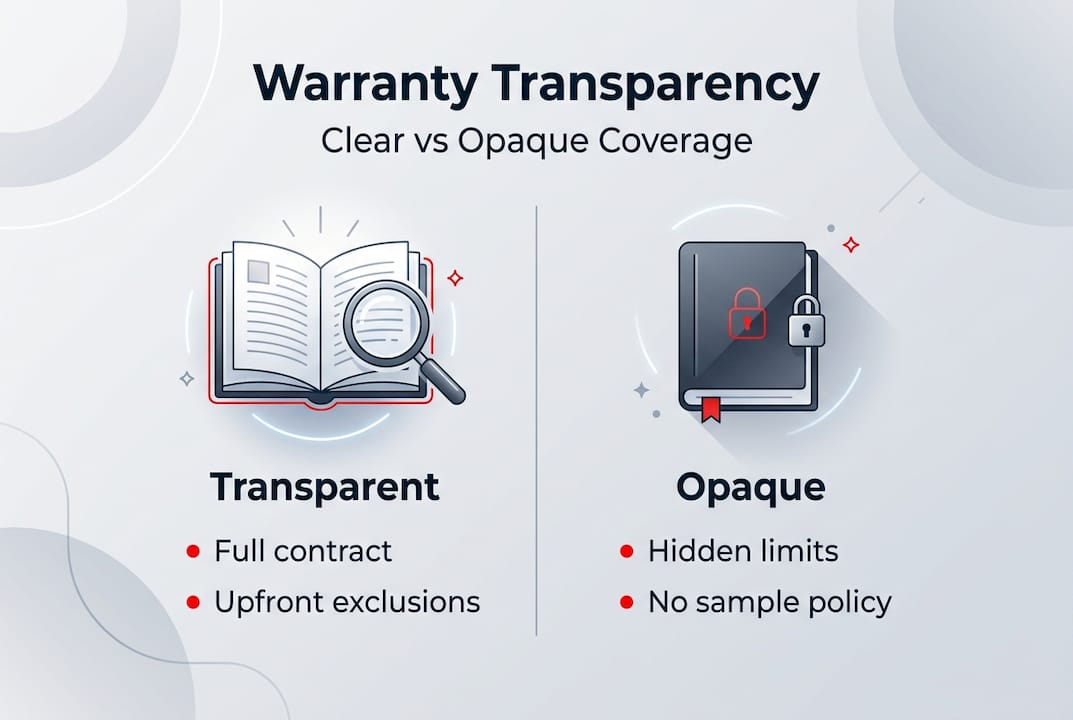 The difference between a transparent and an opaque warranty contract is not always visible from the marketing materials. Both may use the same confident language. The gap shows up when you read the actual document.